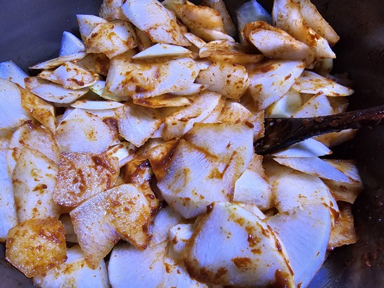 무를 약불에 고추장만 넣고 볶아