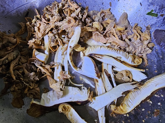 볶은 자연산버섯과 꿩 살코기를
