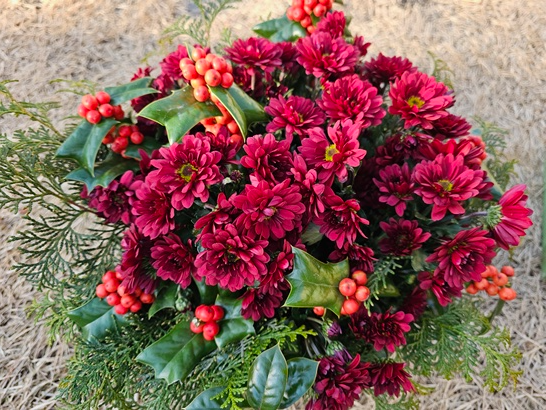 빨간색 국화꽃 두 단 배달시켜 같이 꼽았더니