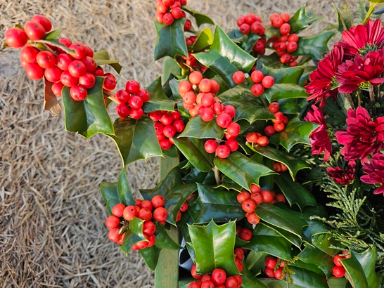 호랑가시 열매 달린 부분만 잘라 꼽았습니다.