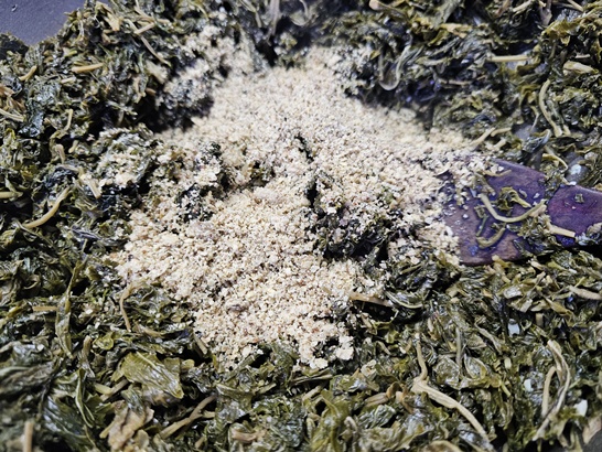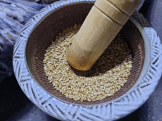 깨소금과 들깨가루를 넉넉하게 넣었습니다.