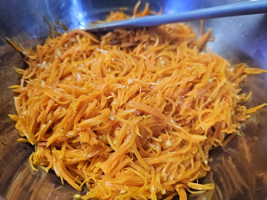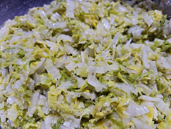 나물은 잘게 잘라서 해야 먹기 좋다~