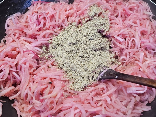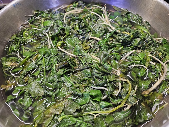 꼭 짜서 깨소금을 넉넉하게 넣고