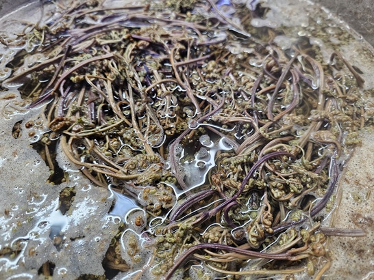 냉이를 캐서 다듬어 여러 번 세척을 하고